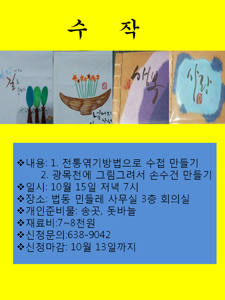 수작(수첩,손수건 만들기) 신청하세요^^ 상세내용