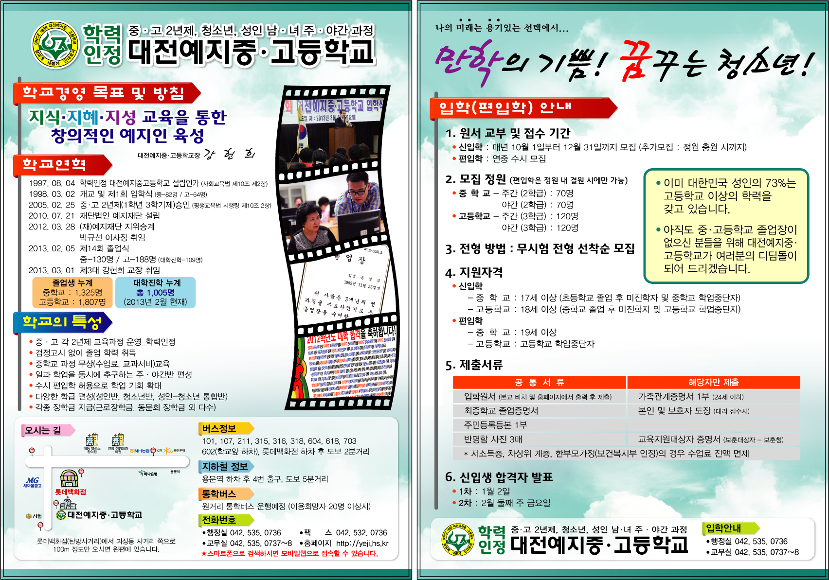 제가 지난 5월부터 근무하기 시작한 대전예지중고등학교는요 피치 못할 사연으로 배움의 기회를 놓치신 성인분들을 위한
