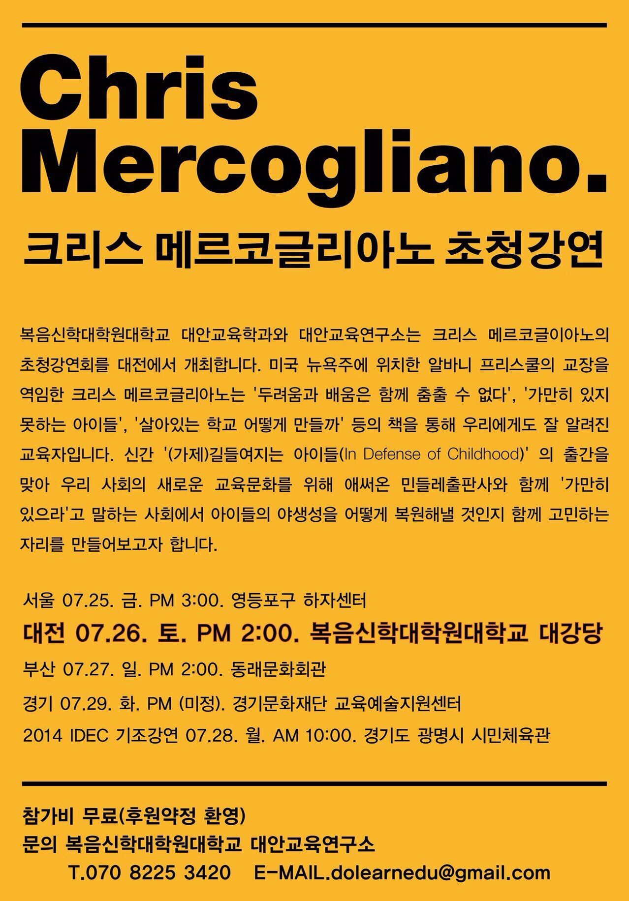크리스 메르코글리아노 초청강연회 상세내용