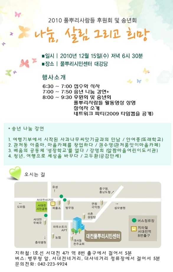 [풀뿌리사람들초대] 나눔, 살림 그리고 희망(송년회및 후원회)