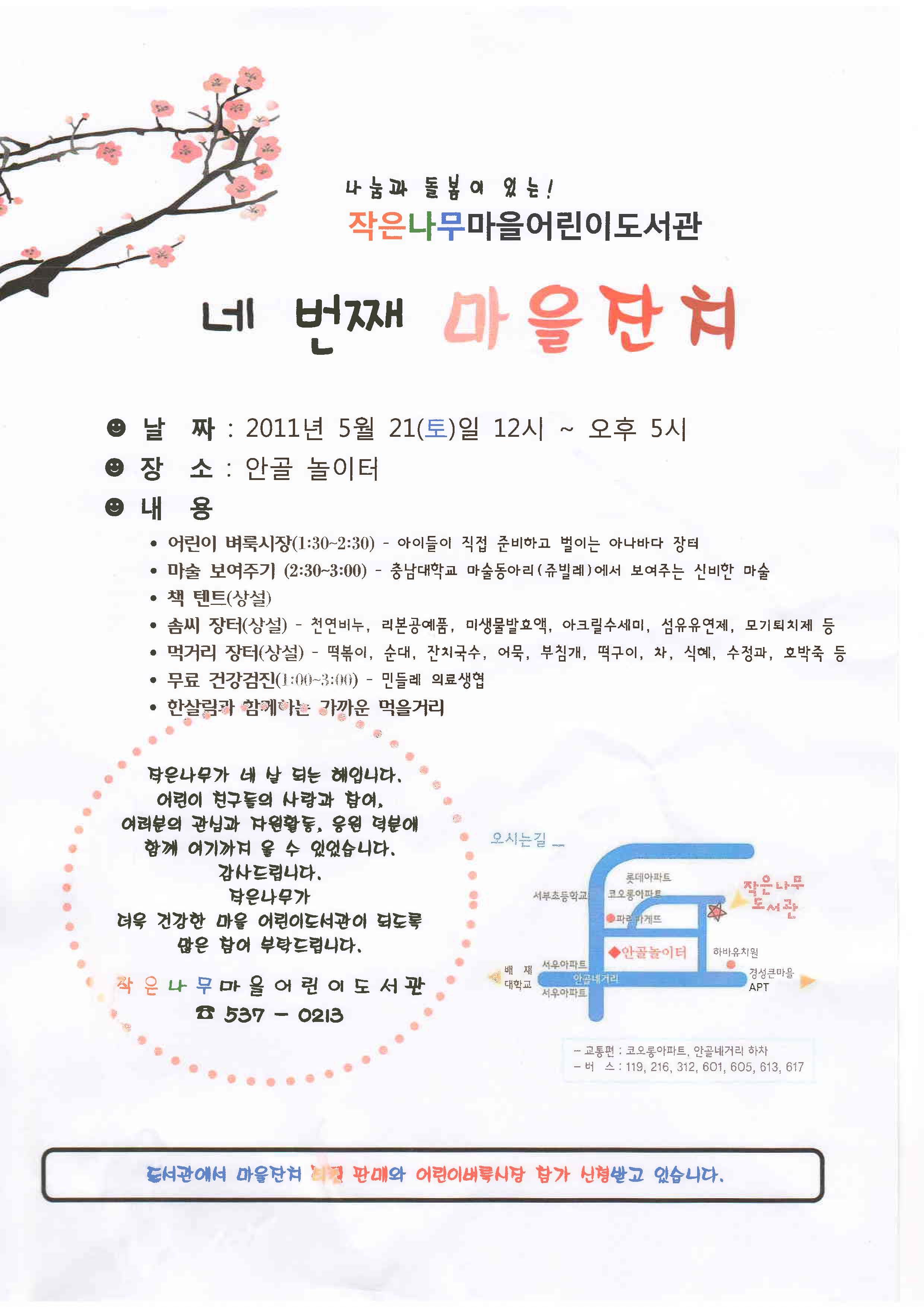 | 제목 | [내동 작은나무도서관, 네 번째 마을잔치] 민들레에서 검진지원 갑니다~~ |