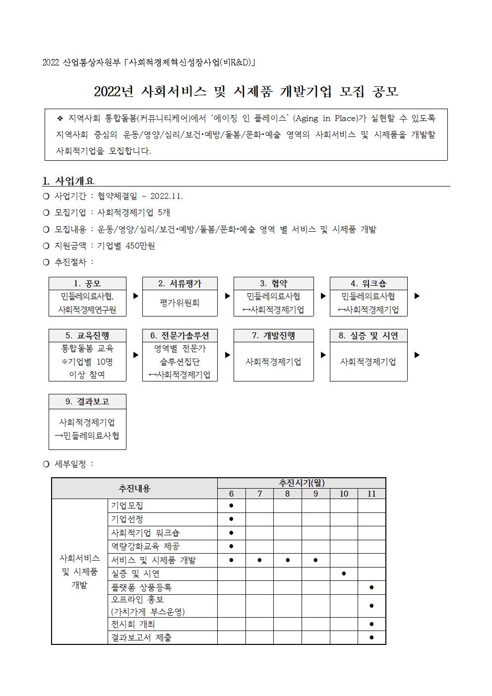 | 제목 | [마감] 2022년 사회서비스 및 시제품 개발기업 모집 공모 |