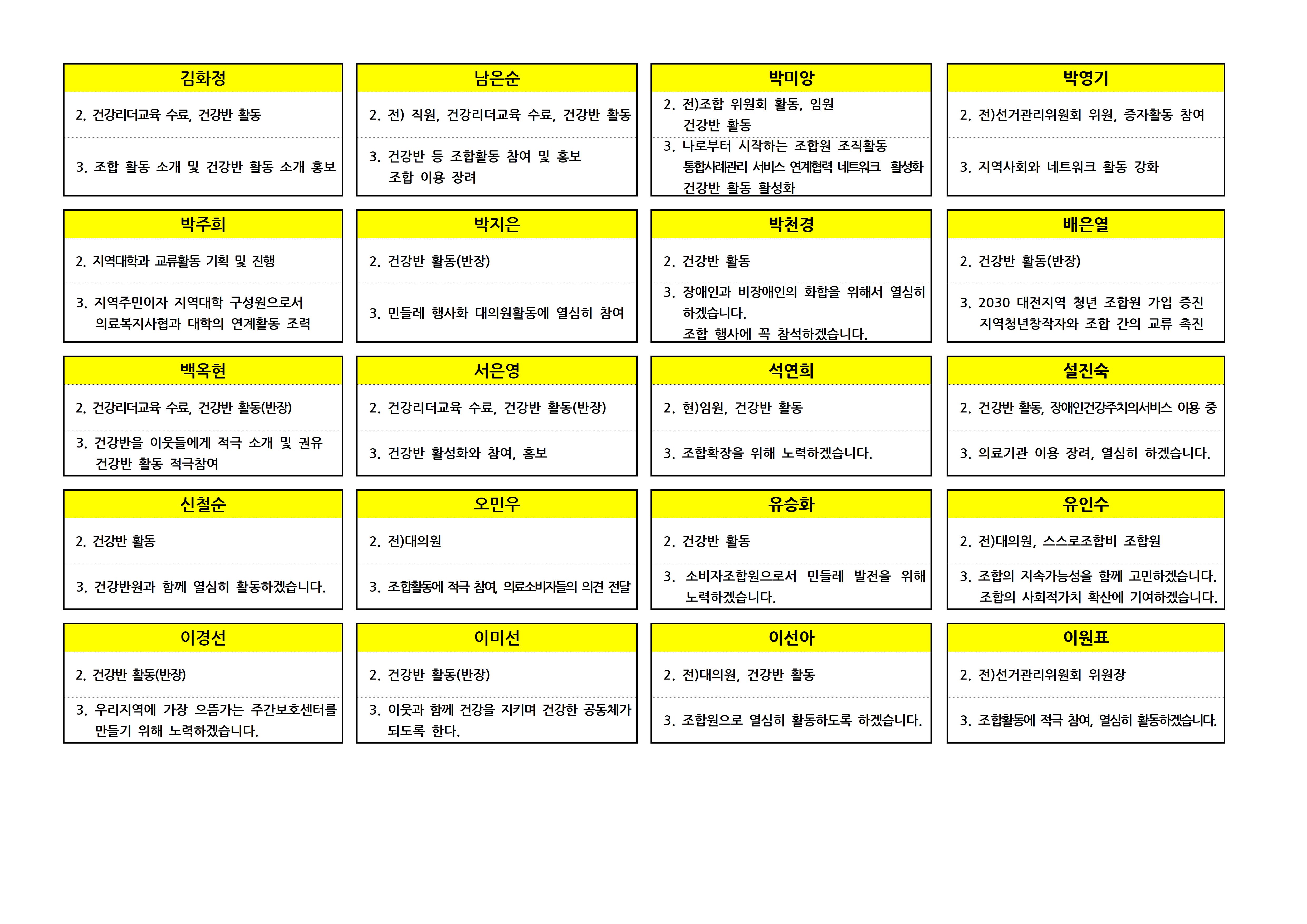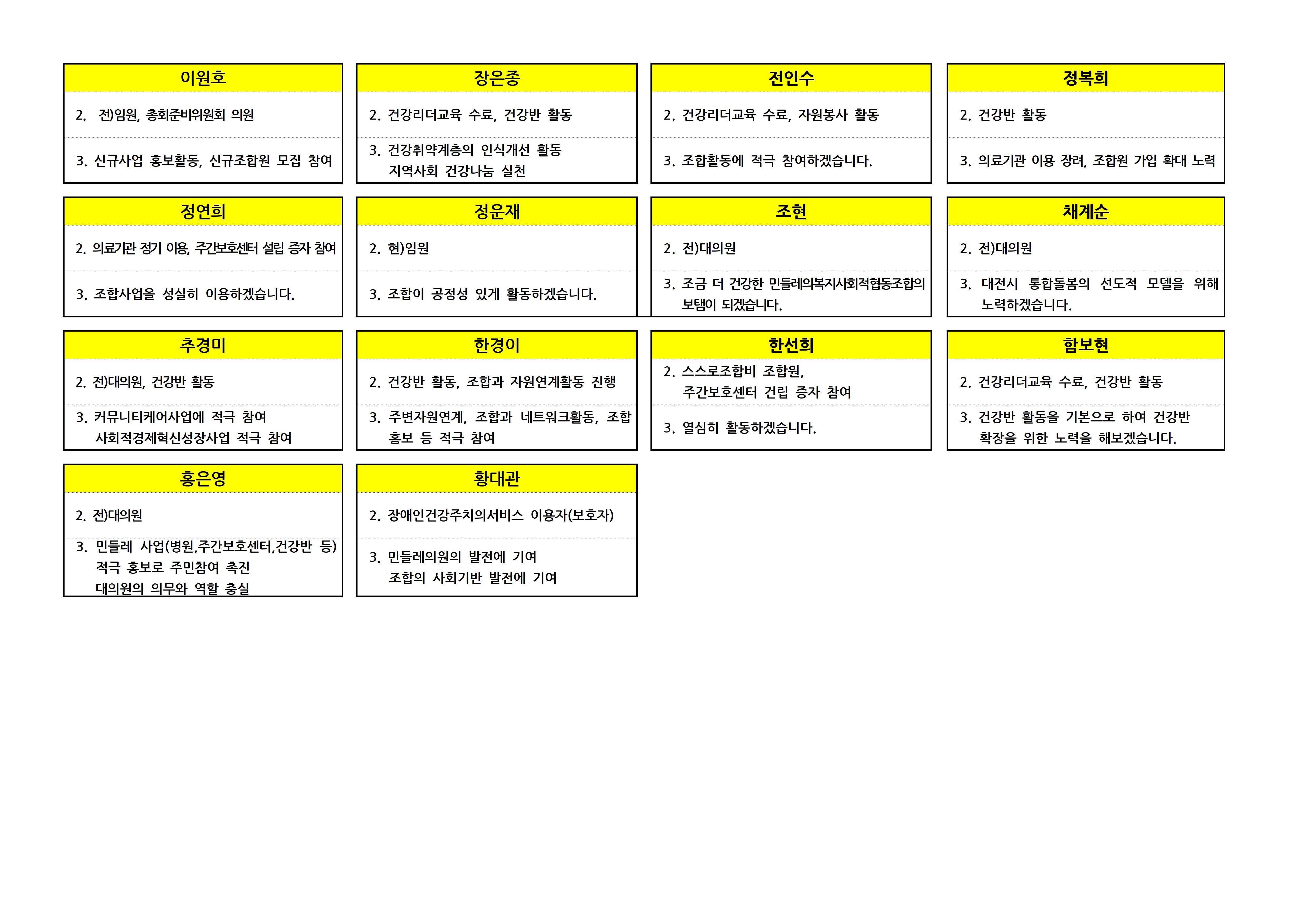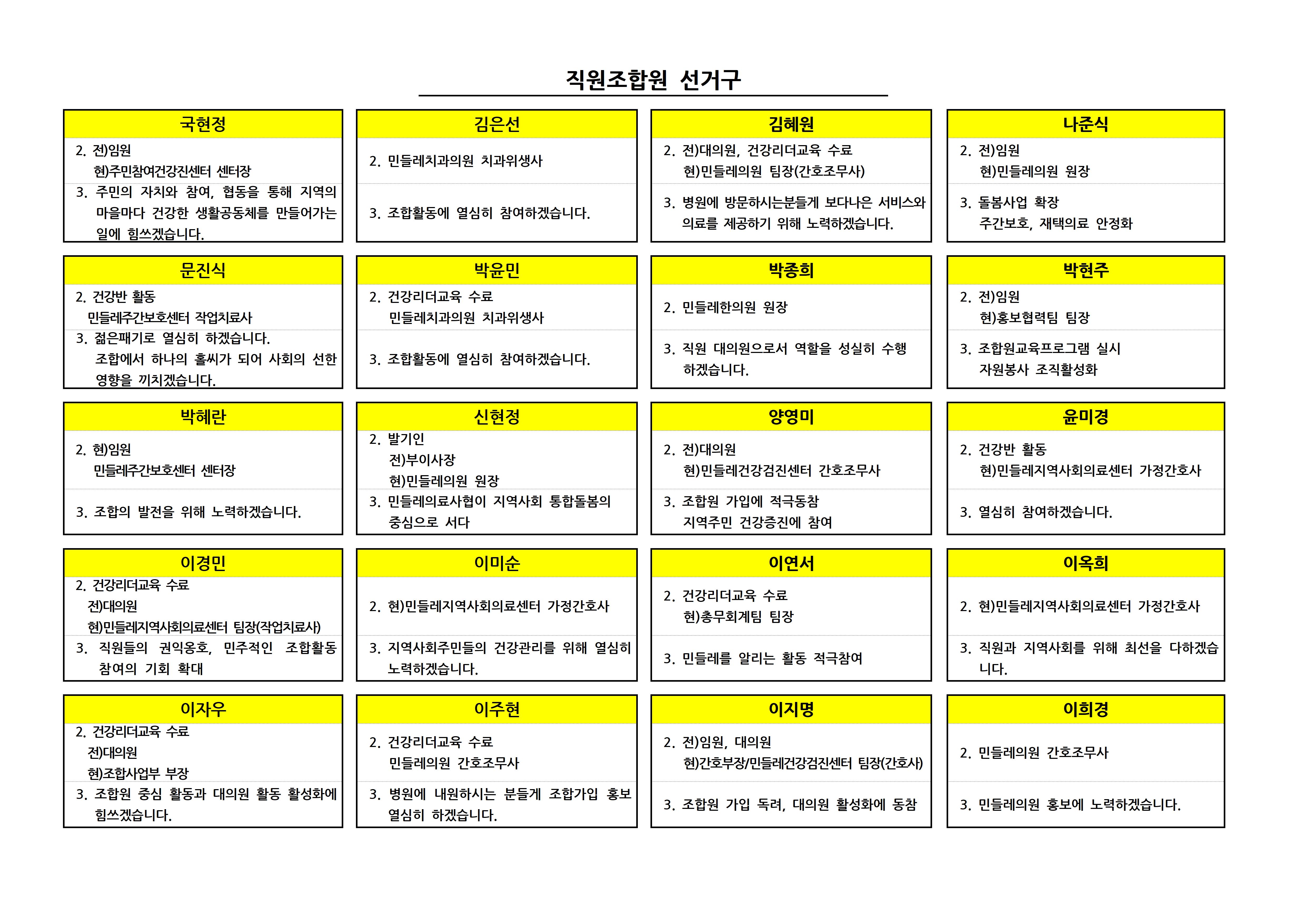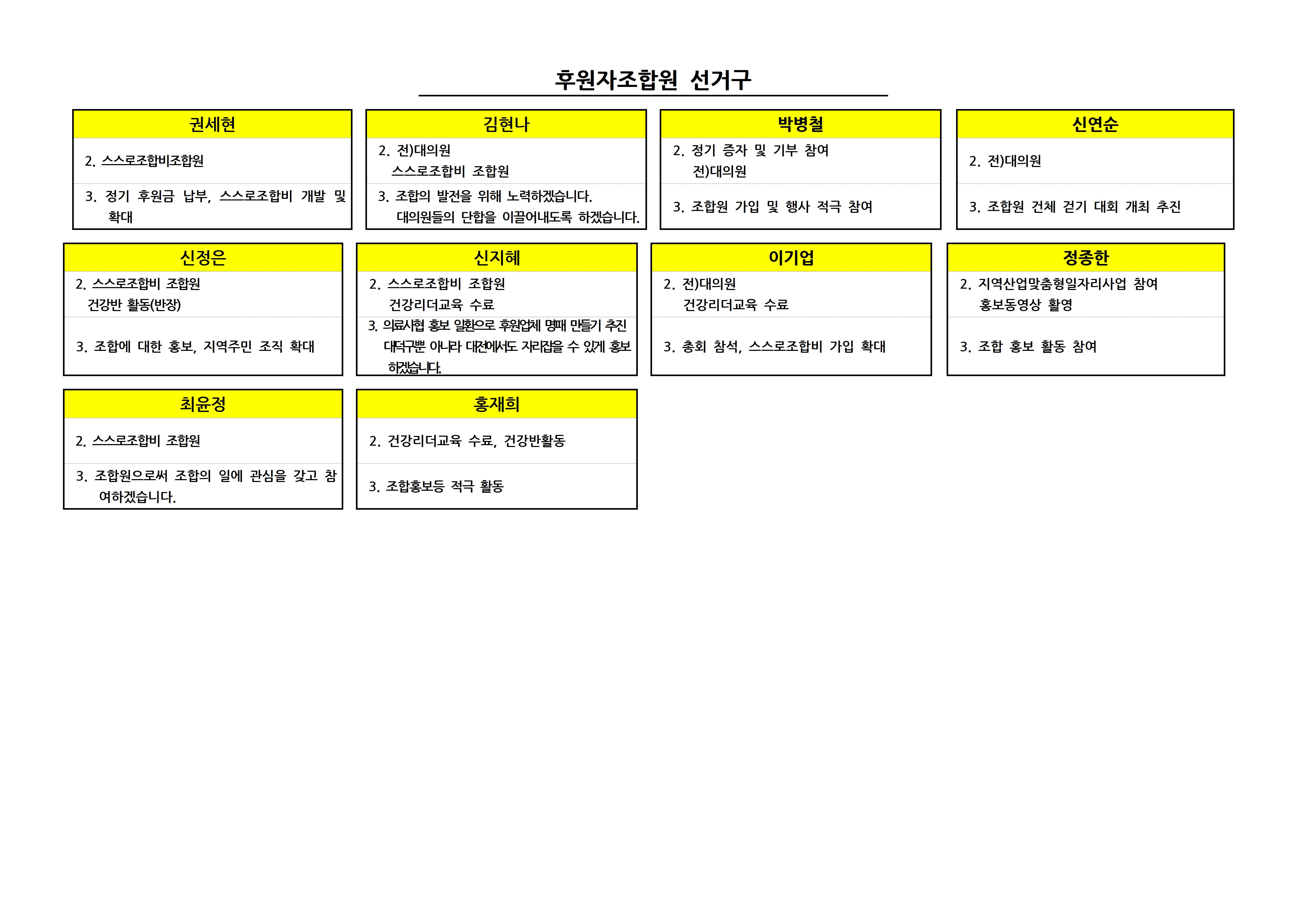 제9기 대의원 입후보자 선거구별 공보 상세내용