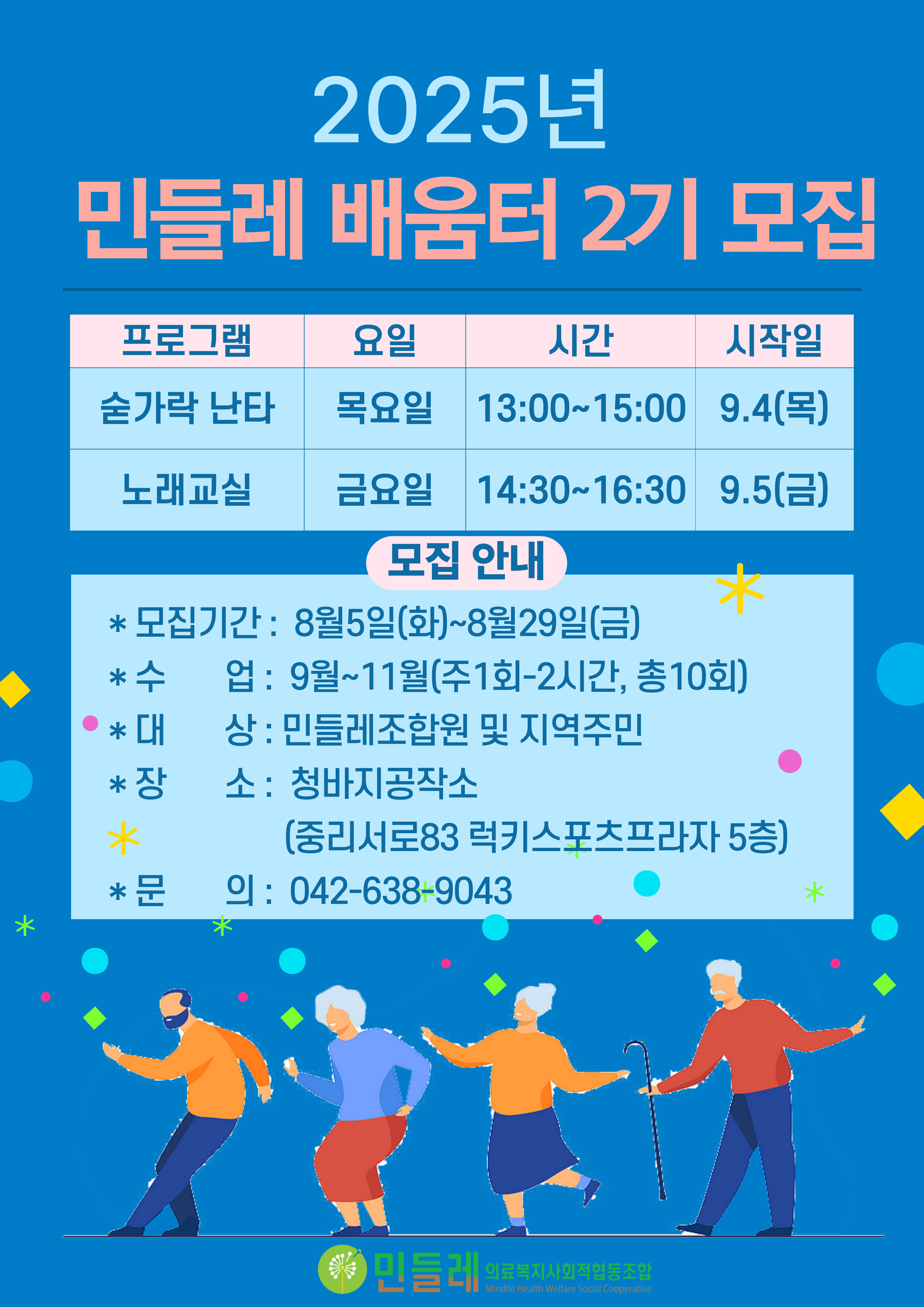 | 제목 | 2025년 '민들레 배움터 2기' 모집 |