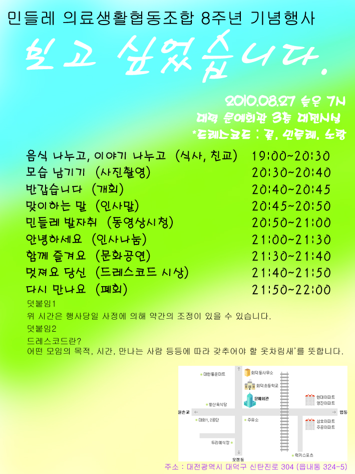 제목 만나고 싶습니다.(민들레 의료생협 8주년 기념행사에 초대합니다)