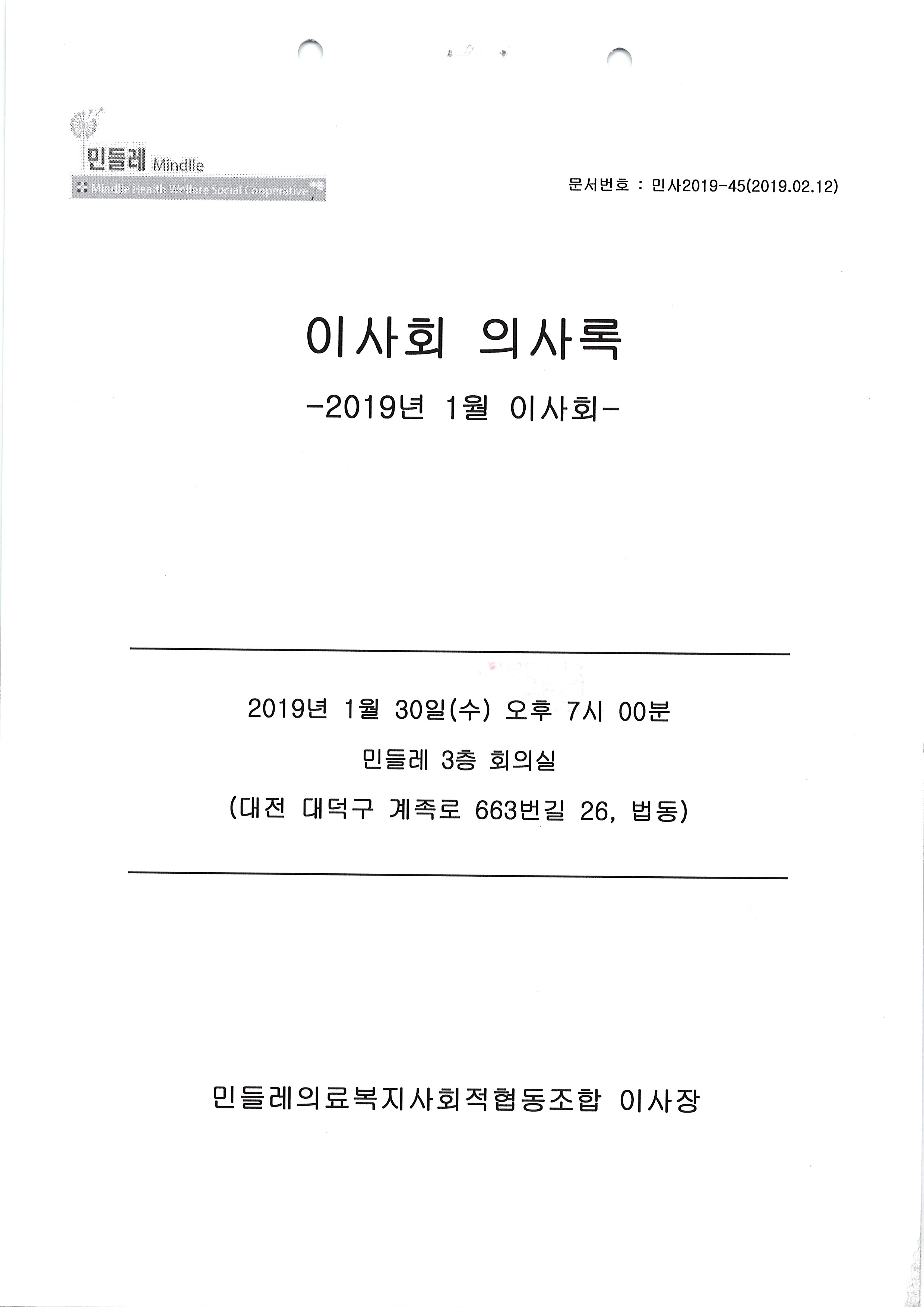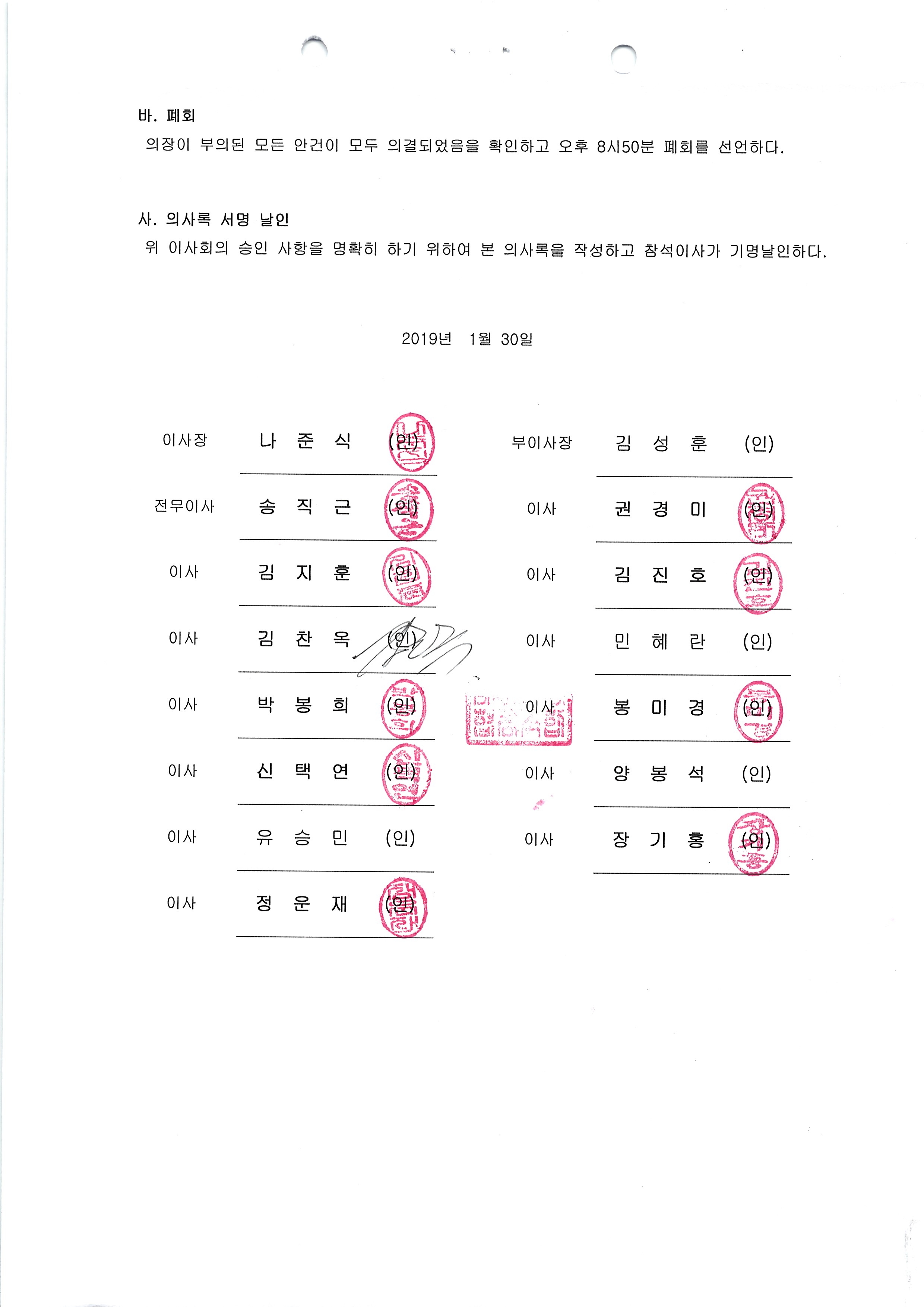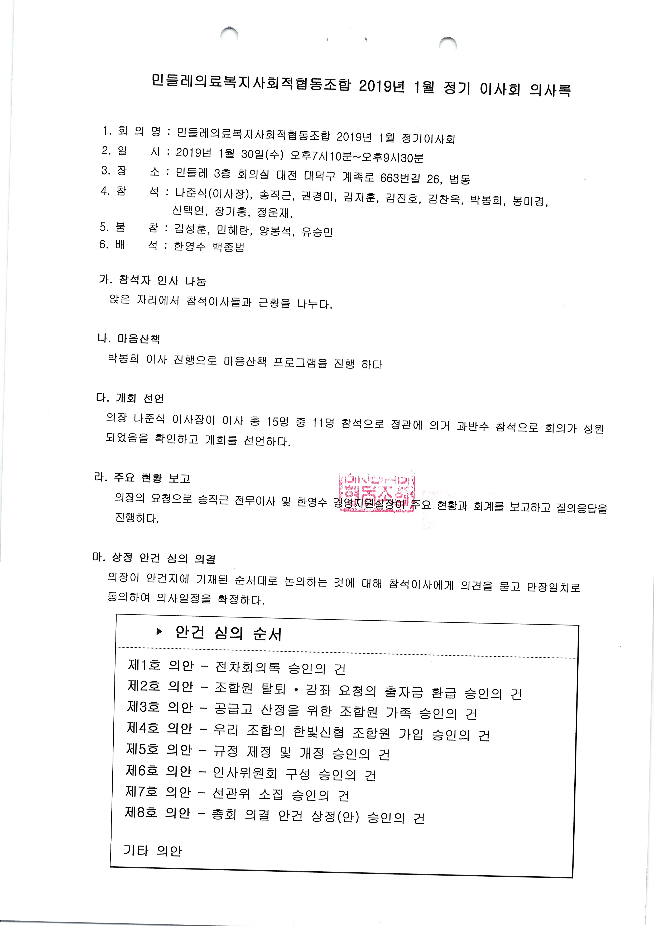 [2019-01] 정기이사회 결과보고