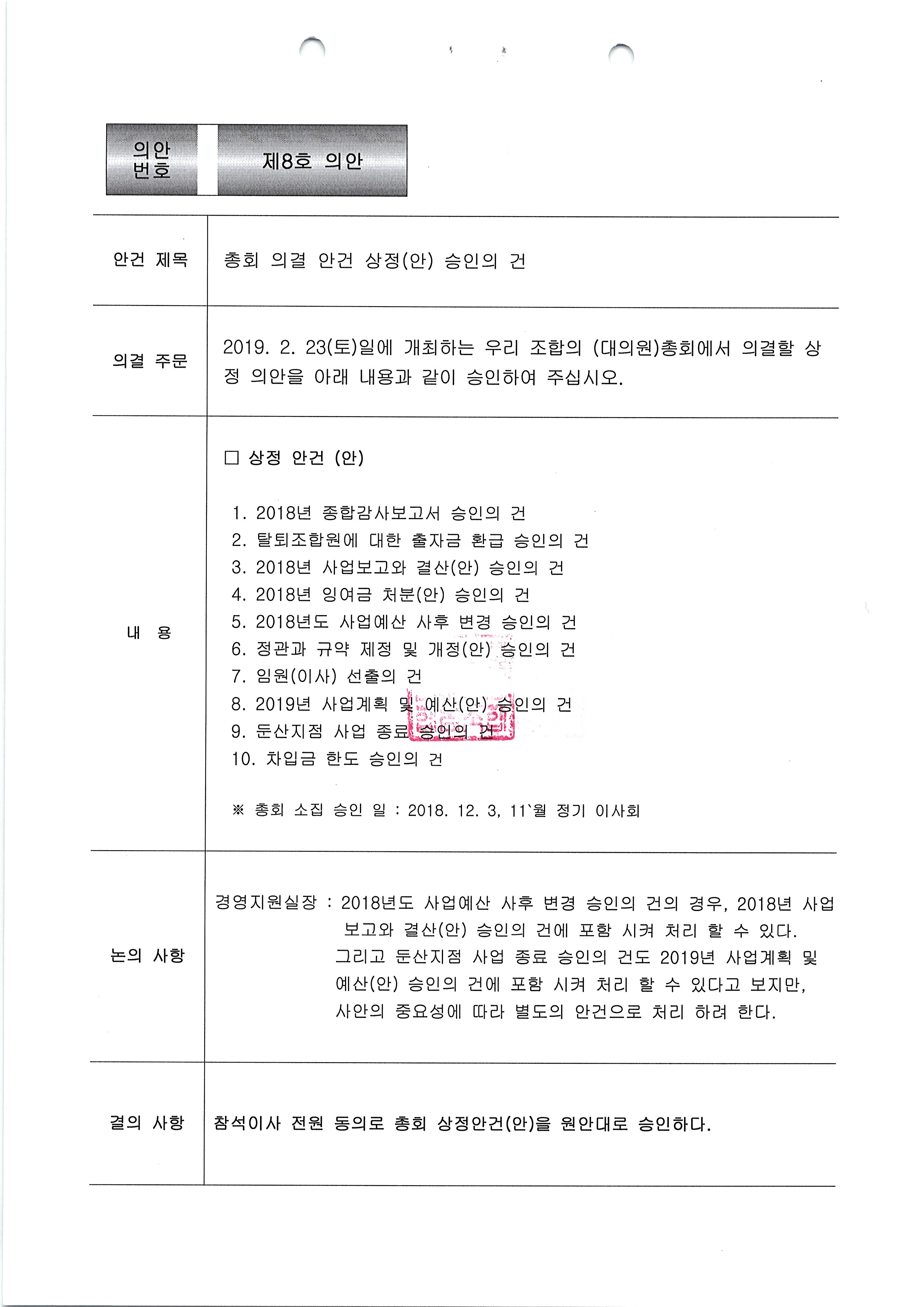 [2018-12] 정기이사회 결과보고