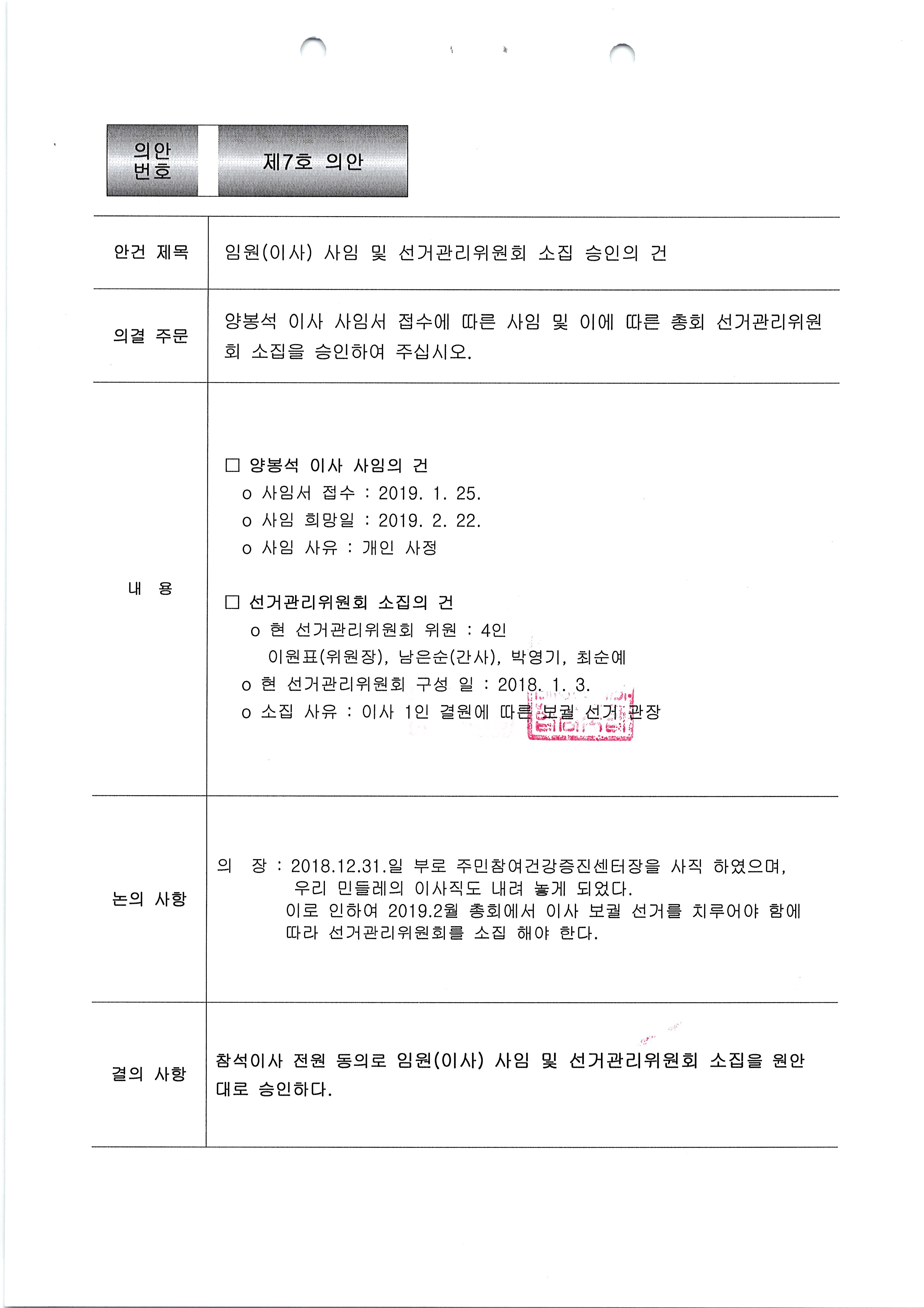[2019-02] 임시이사회 결과보고