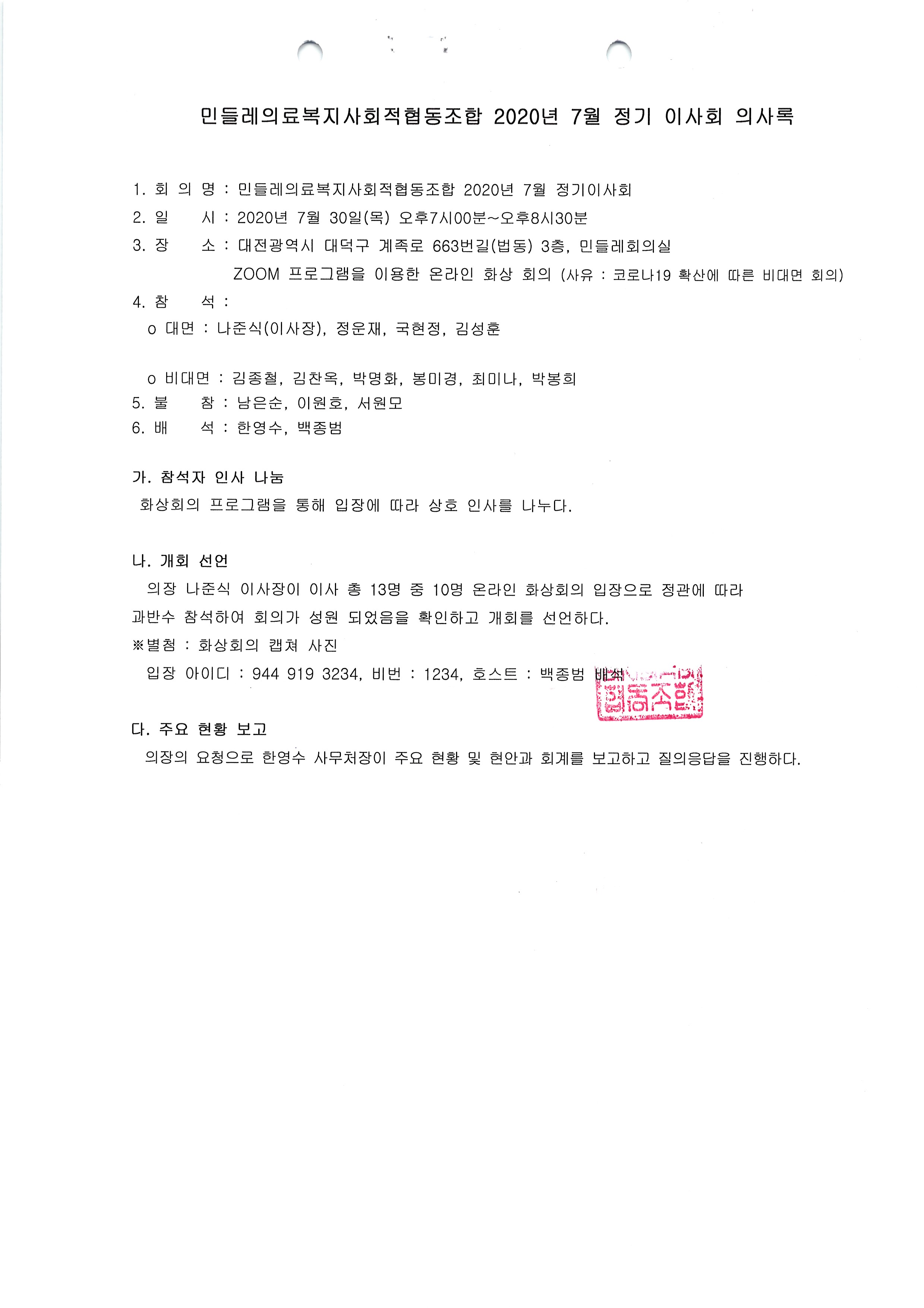 [2020-07] 정기이사회 결과보고
