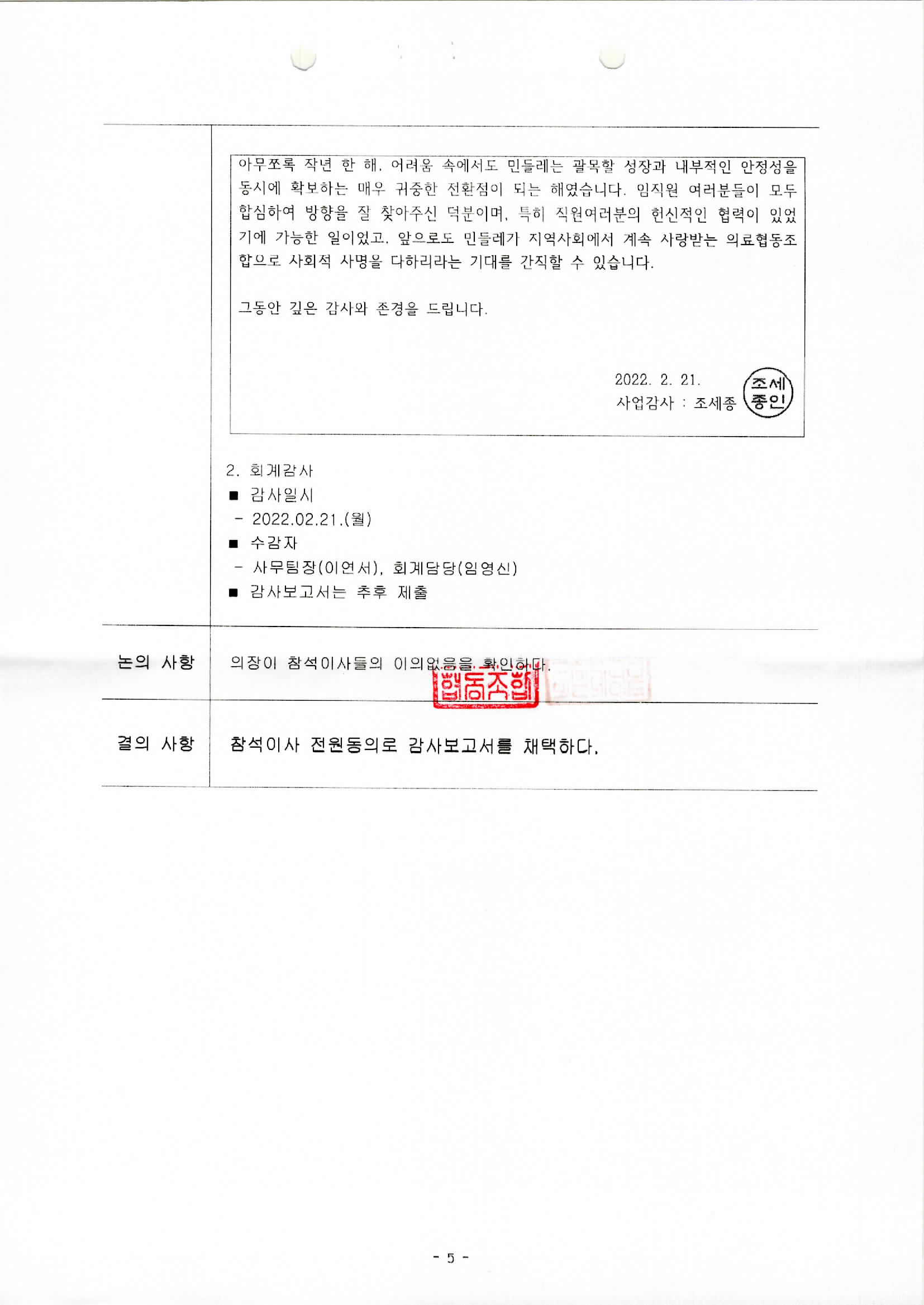 [2022-02] 정기이사회 결과보고