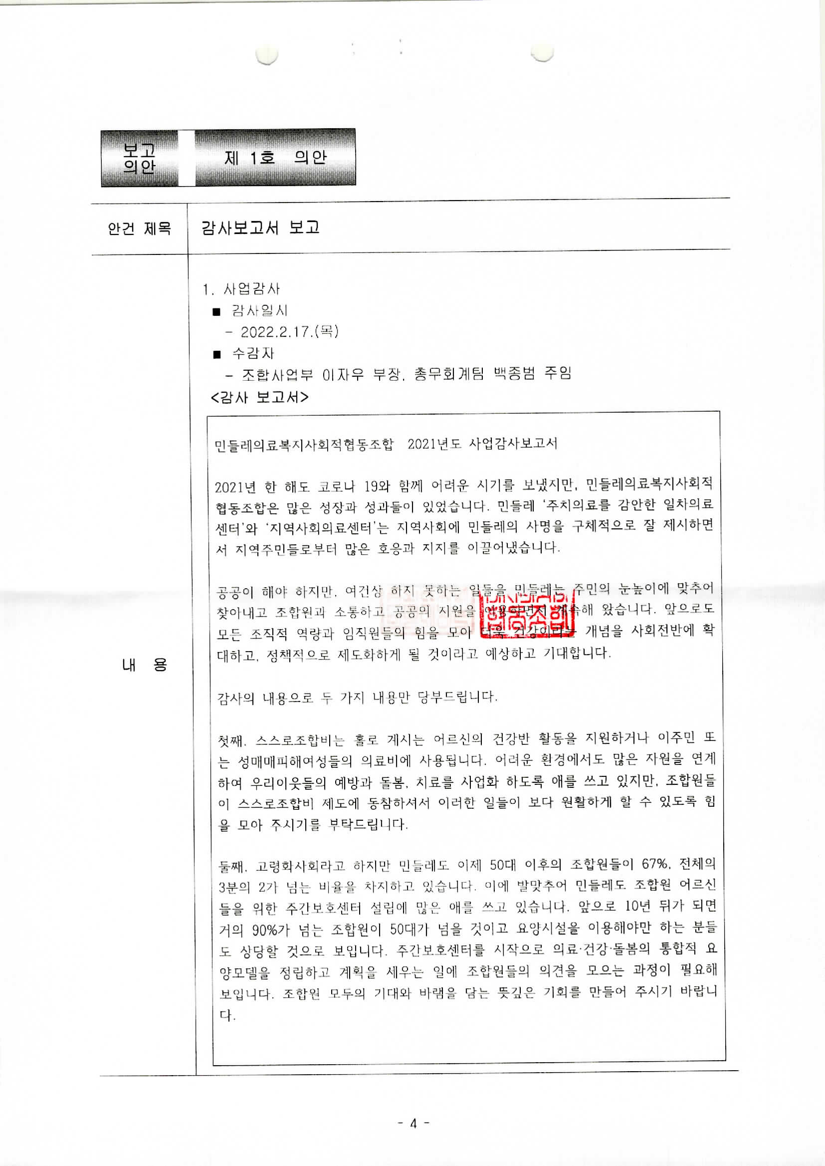 [2022-01] 정기이사회 결과보고