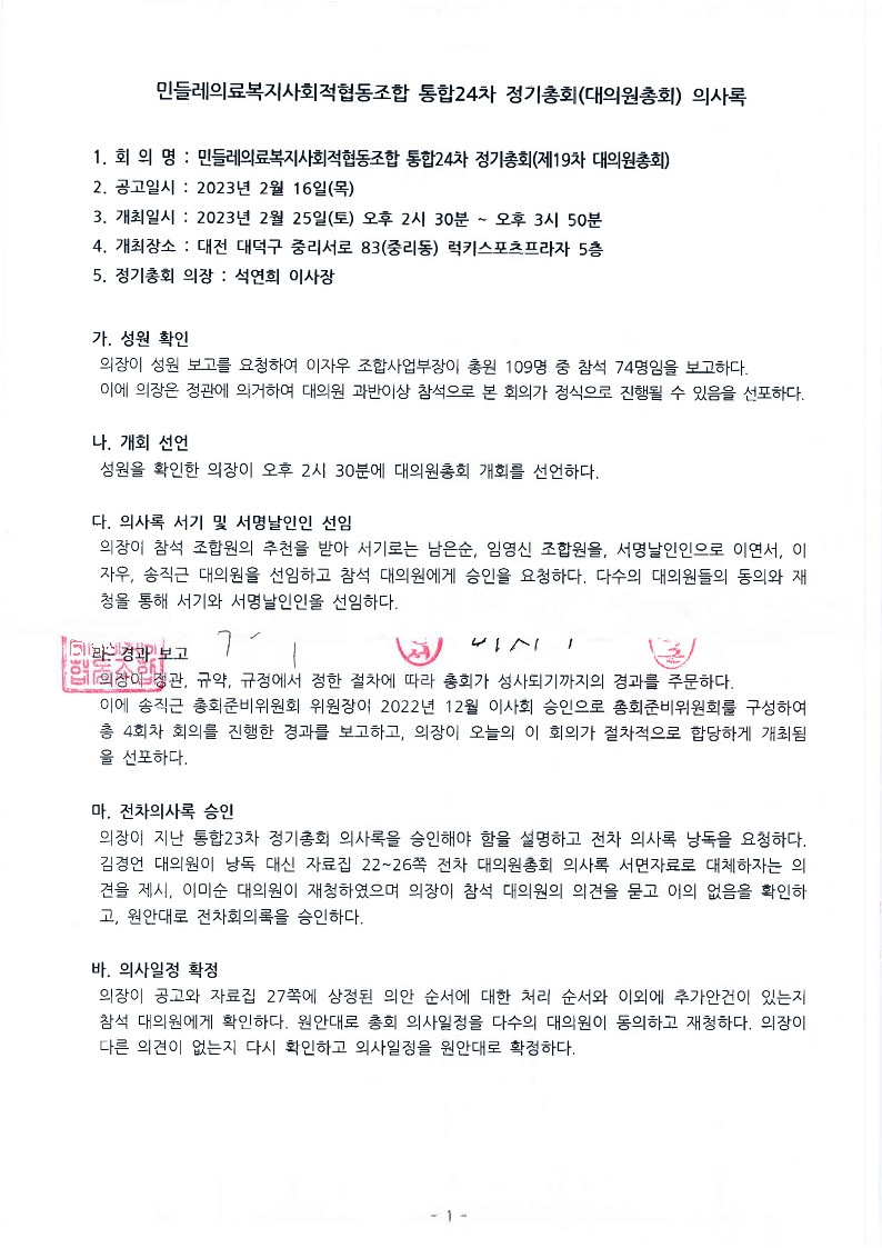 통합24차 정기총회의사록(2023.02.25)