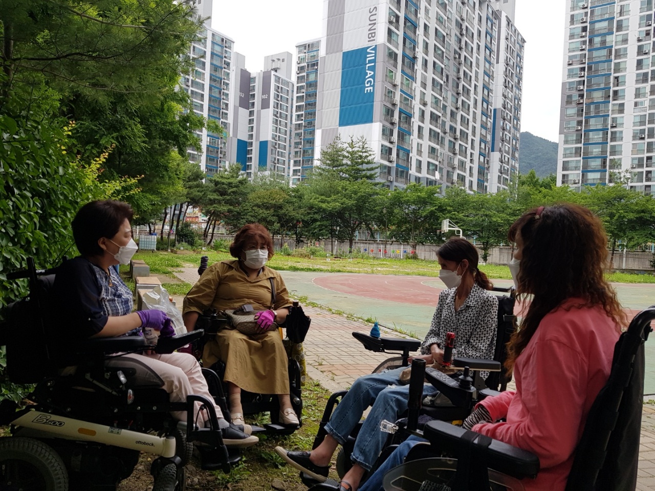 법동 한마음 아파트 내의 공원에서 모여 비타민 D 섭취를 하며 이야기를 나누는 모임을 가졌습니다.