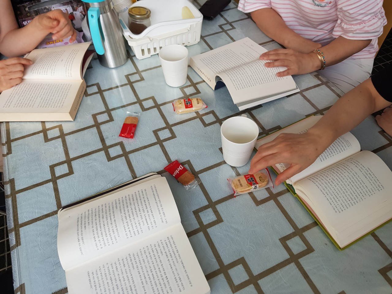 코로나로 인해 여럿이 모여 활동할 수 없어 도서관에서 책 봉사하고 간단한 다과를 나눴습니다