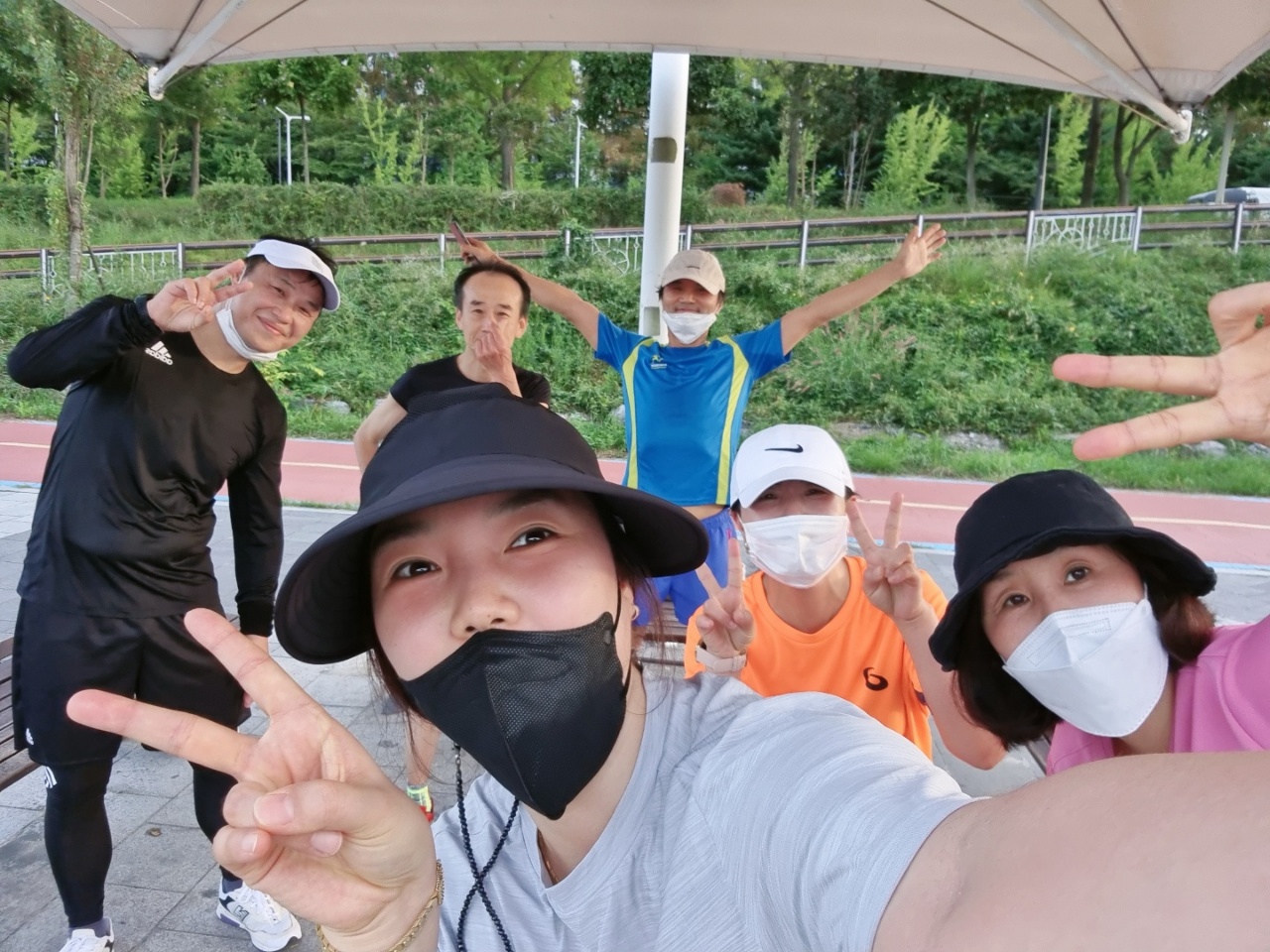 이른 아침 5시30분 , 해가 뜨기도 전에 모여서 달리기 준비를 한다. 10키로 달리기,한 시간 달리기 각자 목표를 세우고 한 시간을 달리고 마친다.