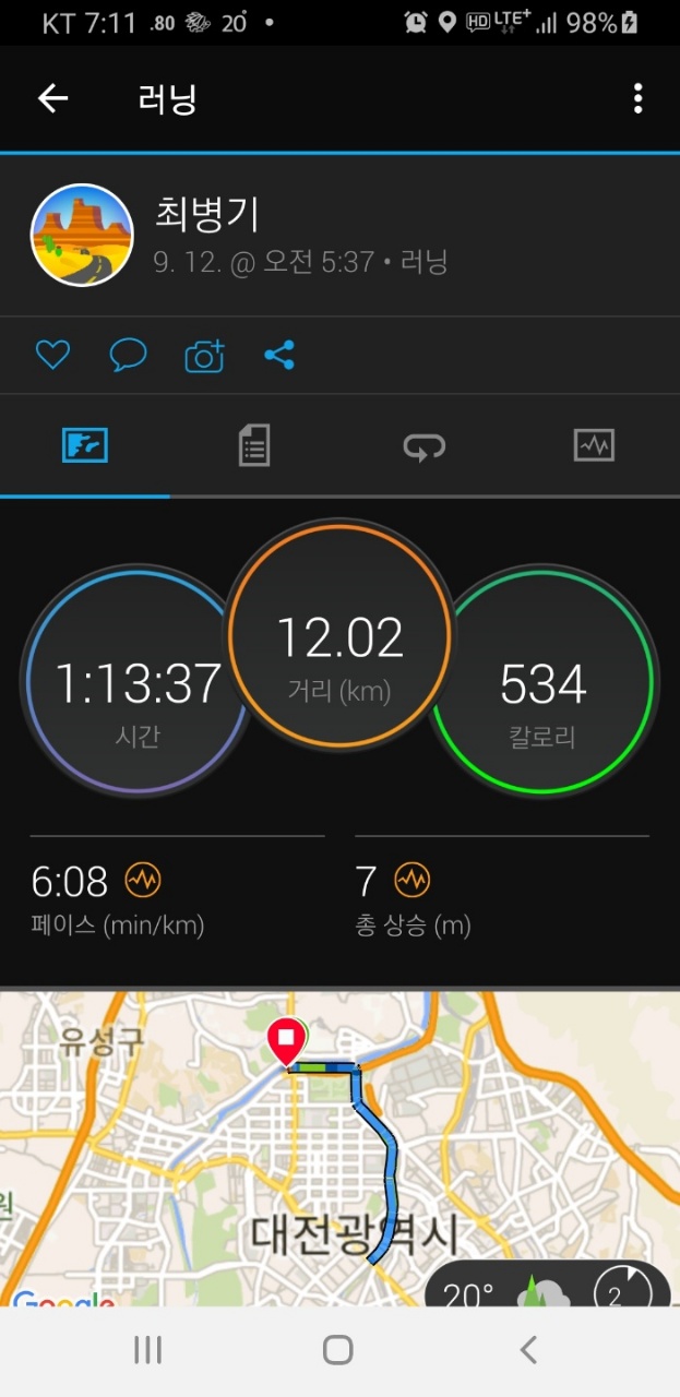 오늘은 단촐하게 세 명이 모여서 뛰었다. 10키로씩 뛰다가 오늘은 거리를 2키로 늘려보자는 최병기조합원님의 말에 따라 세 명이 12키로를 완주하였다. 늘 10키로 뛰다 2키로 늘렸을 뿐인데 무척 멀게 느껴졌다~^^ 담 주도 12키로 뛰자고 하신다.^^;;; 힘은 들었지만 몸은 참 개운하고 좋다.