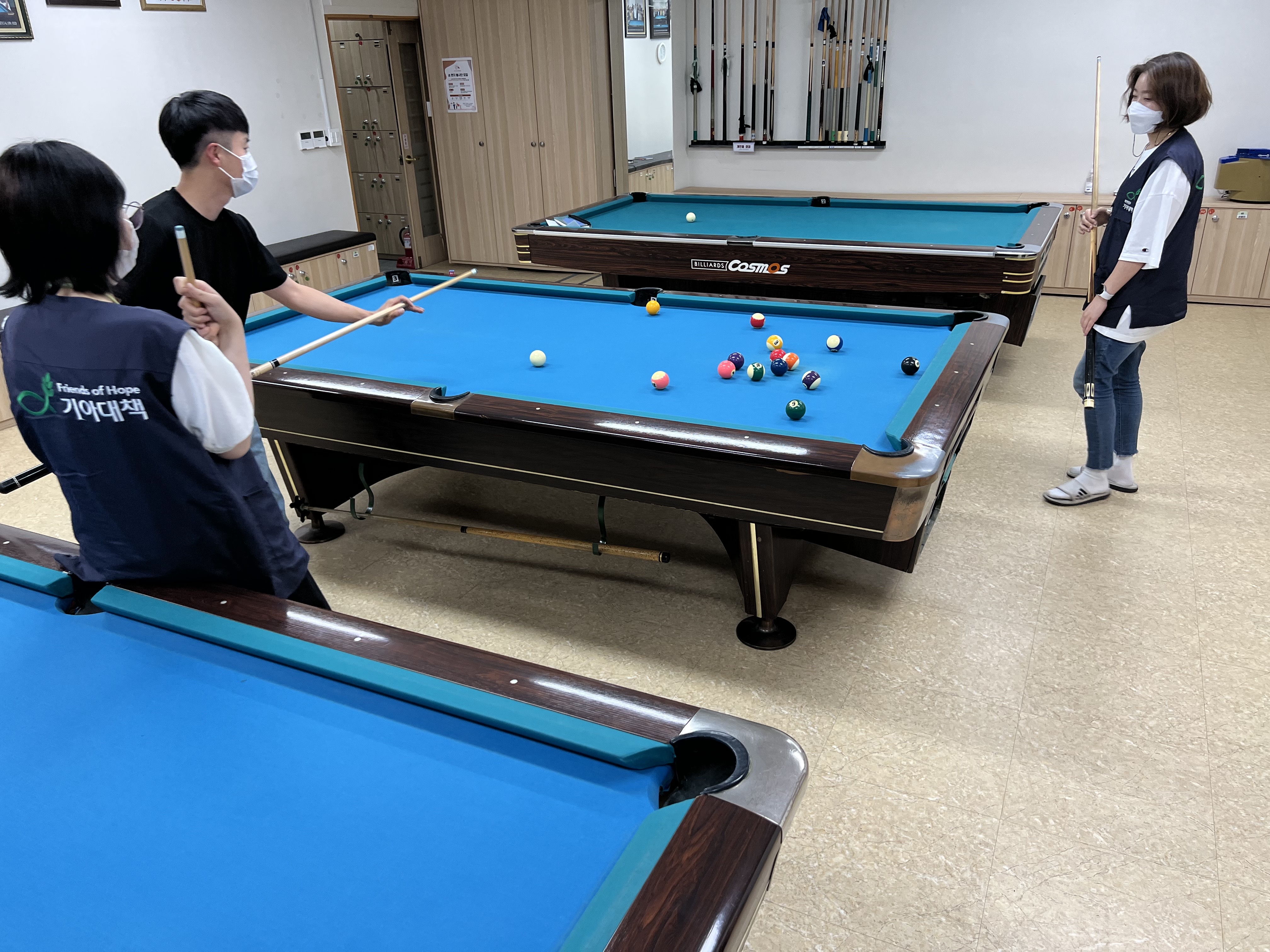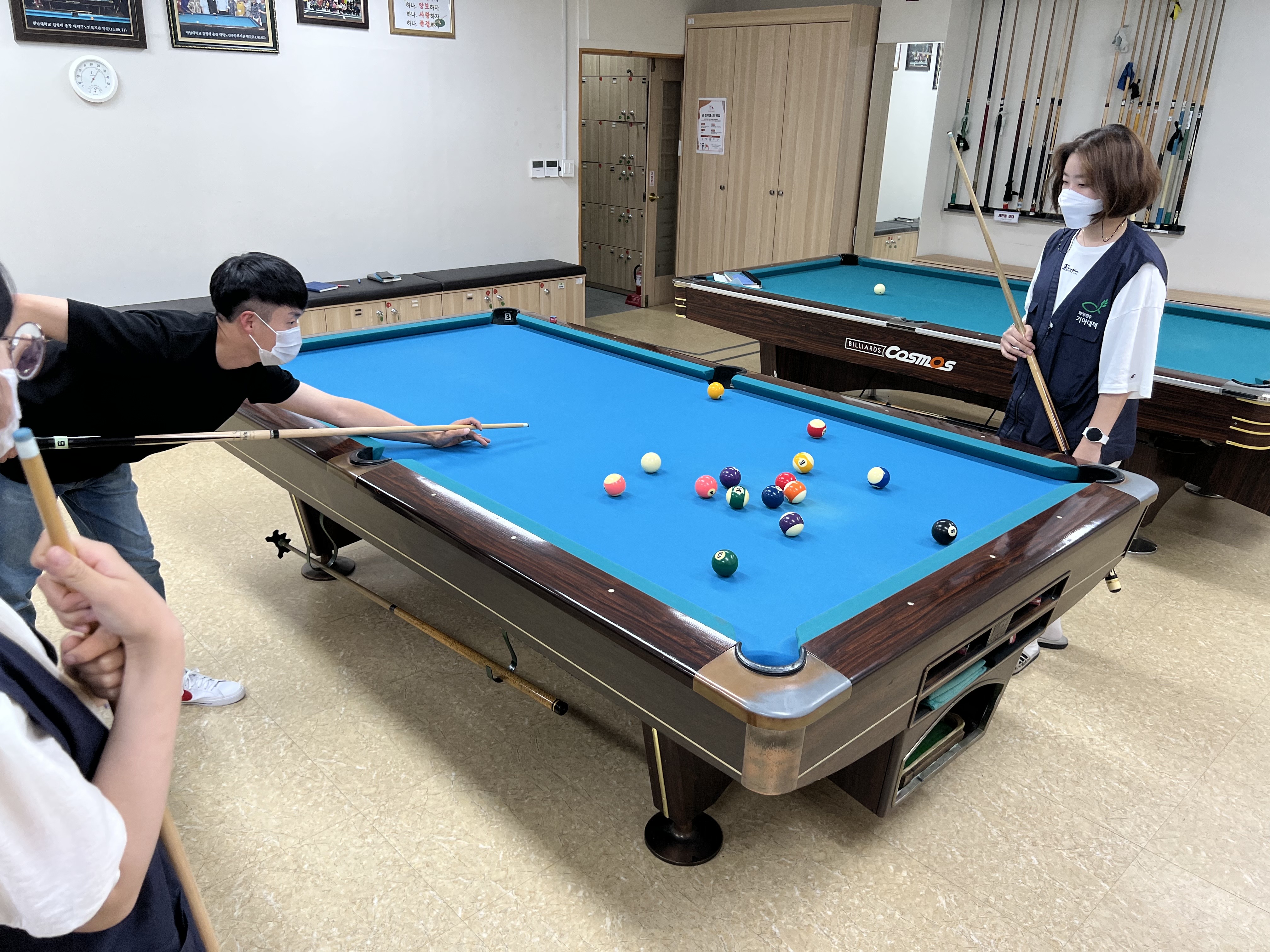 우천으로 인하여 실내에서 당구활동(35분)진행함