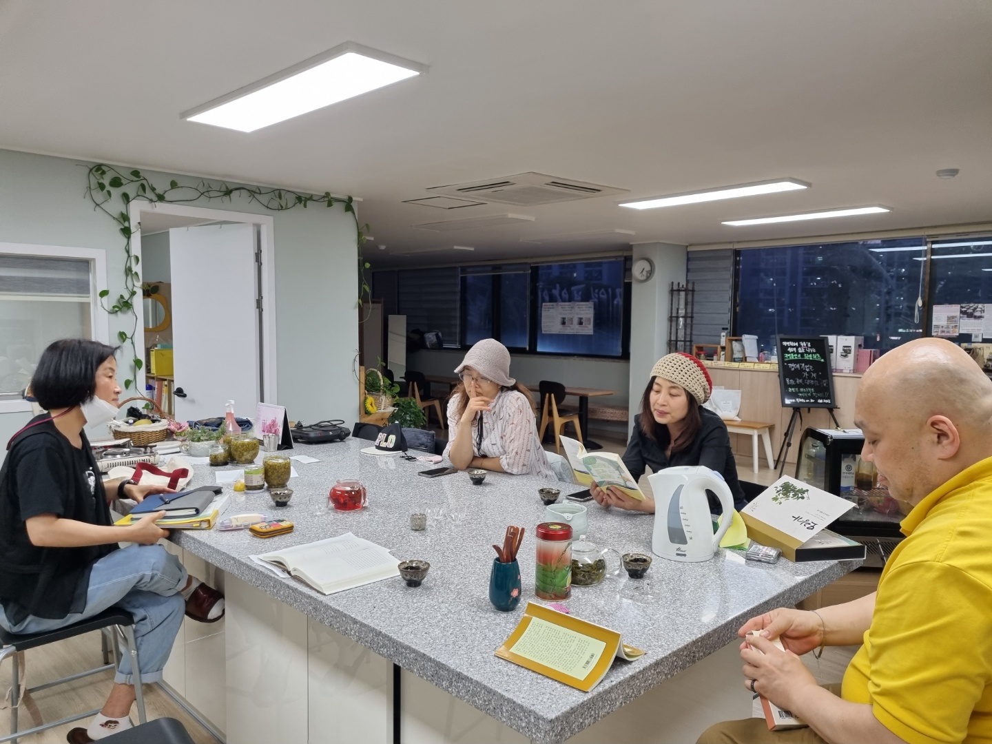 우리 으랏찻차 건강반은 차를 즐기며, 마음의 쉼을 주는 책을 함께 나누는 활동을 합니다.일에 지친 우리에게 한줄기 쉼으로,서로의 고단함에 공감으로 마음을 달래는 건강반입니다.★오늘 마신 차모링가와 히비스커스가 블랜딩된 차,깡통우유 맛이 나는 아리산 밀키우롱차 ★오늘 활동오민우