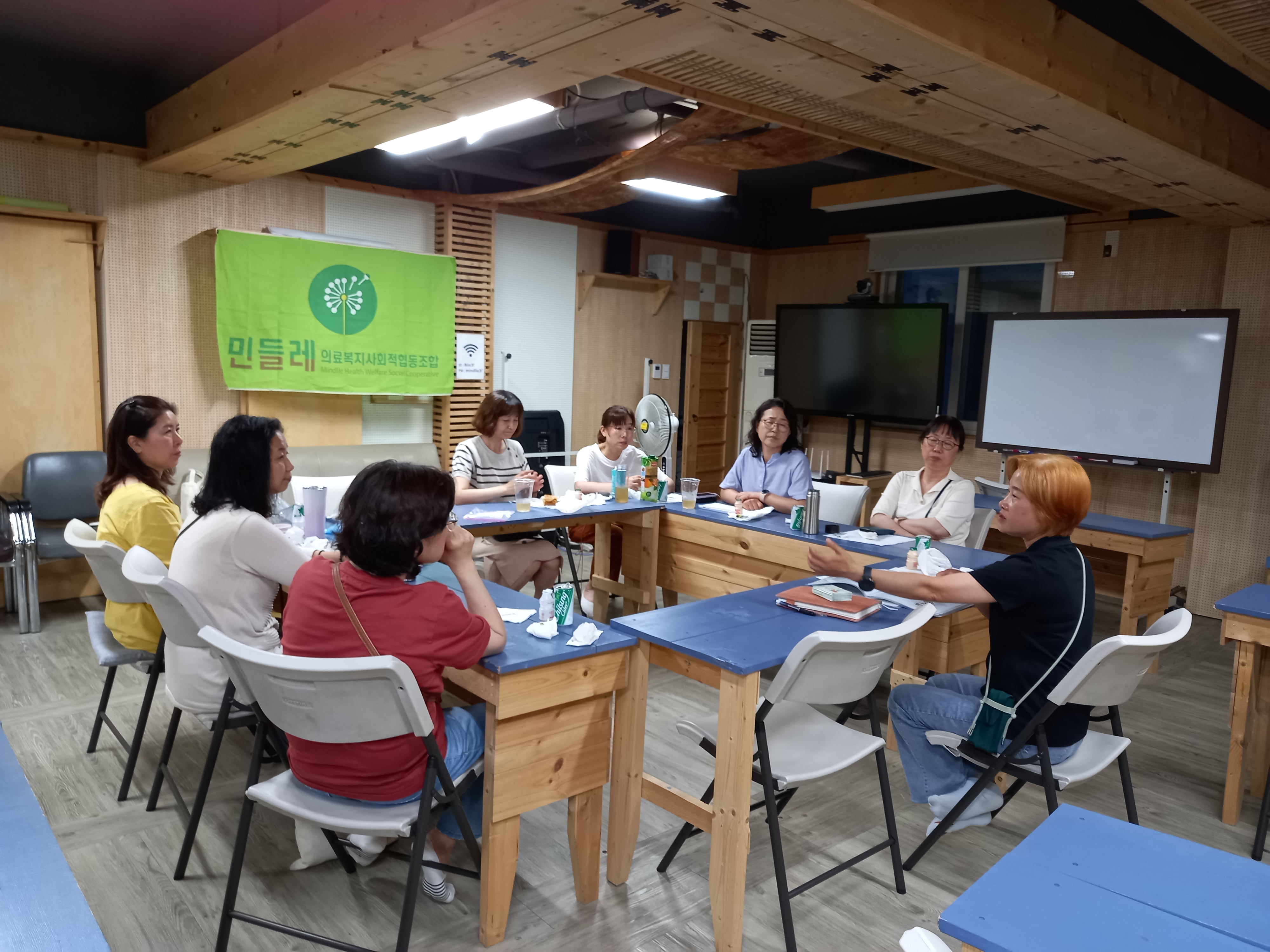 건강반의 원활한 활동지원과 관계형성을 위해 민들레의료사협 국장님과 만남. 질의 응답, 다양한 주제로 즐거운 시간을 가졌습니다.