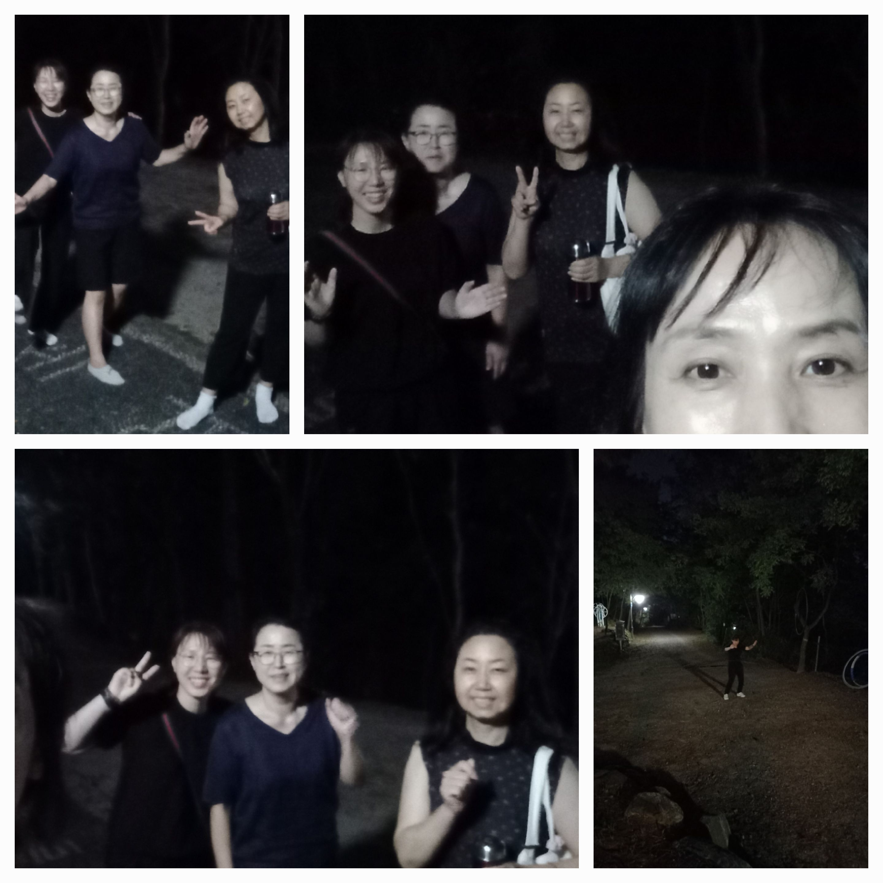 9/1 ,8p법동소류지에서부터 계족산 봉황마당까지 산책함. 슈퍼블루문(전날)영향으로 달빛과함께 하였다. 지압길도 걷고 시원한바람도 함께 했다. 9/8,8p (장은영 서은영 최종미 서지윤)법동소류지에서 만나 봉황마당까지 스트레스 털고 장은영님의 요가자세 배우기로 더 즐거운시간이 되었다.